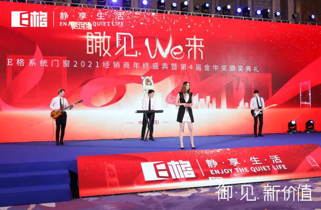 2022年2月25日下午,精彩繼續(xù)。瞰見,we來 E格靜音系統(tǒng)門窗2021經(jīng)銷商年終盛典暨第4屆金牛獎頒獎典禮拉開帷幕。